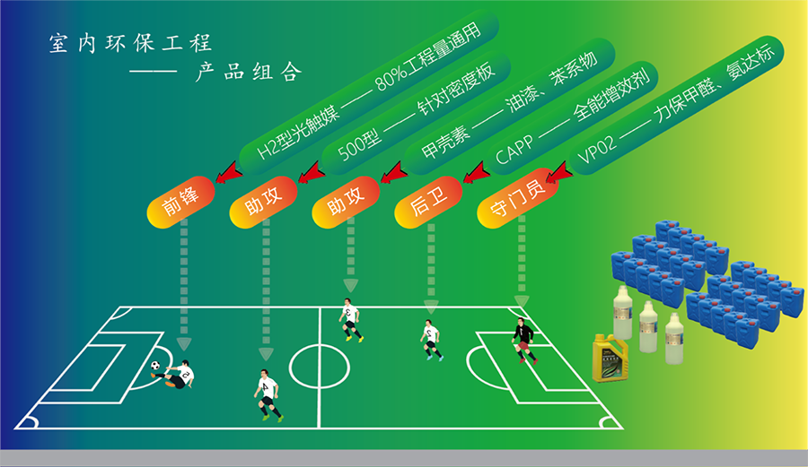 1.前面的4個“隊員”進攻污染源,解決游離甲醛,不是主要任務。